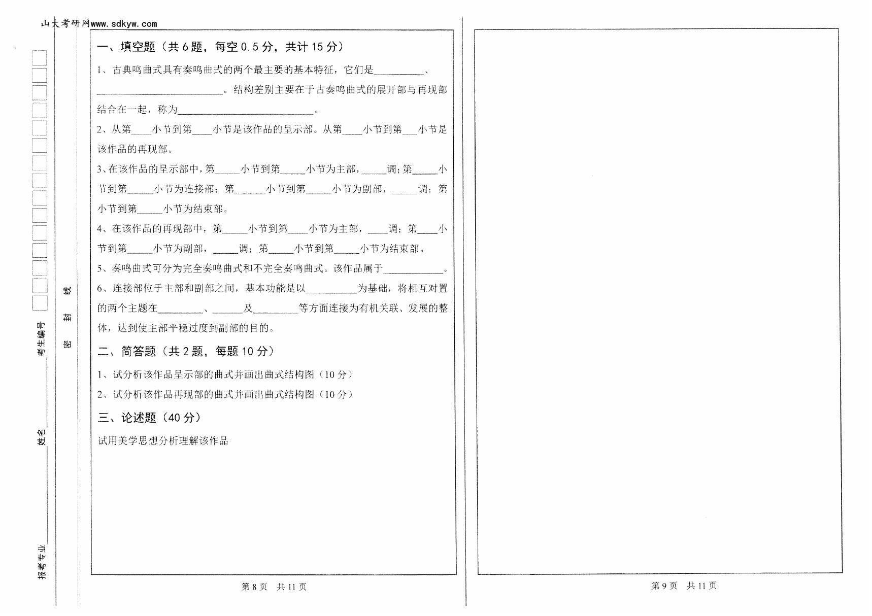 山东大学2017年研究生入学考试922音乐作品赏析初试真